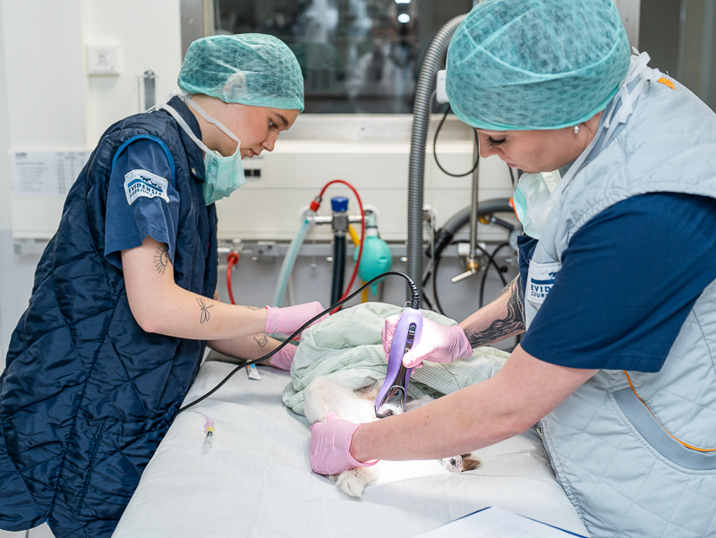 Under hela operationen övervakas hundens hjärtfrekvens, blodtryck, syrgasmättnad och kroppstemperatur för maximal säkerhet. Dropp ges intravenöst för att förbättra cirkulationen och syresättningen.