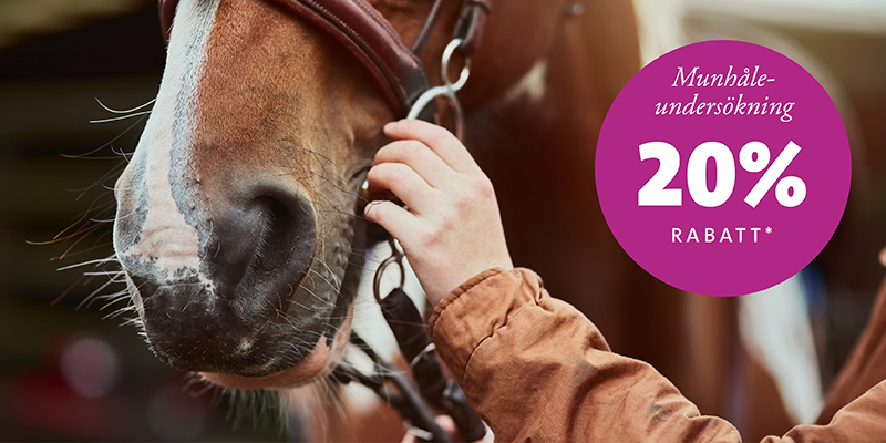Den 5 jan- 28 feb 2026 erbjuder vi dig som kundklubbsmedlem 20% rabatt på munhåleundersökning. Vi gör en fullständig undersökning av hästens munhåla och alla tänder inklusive korrigeringar. Bettanpassning och rådgivning gällande utrustning ingår också. Ev. tillkommande undersökningar och behandlingar ingår ej. Välkommen att boka tid!